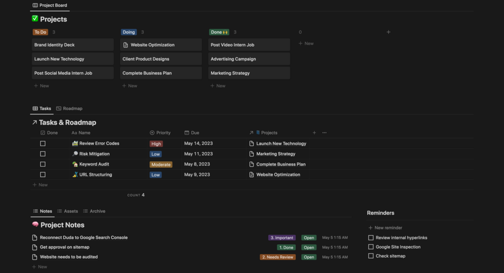 Don't waste any more time juggling multiple tools and struggling to keep your projects on track. Download the Notion Project Manager template today and take the your productivity to new heights!