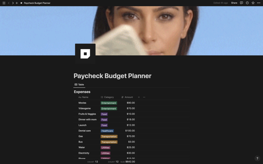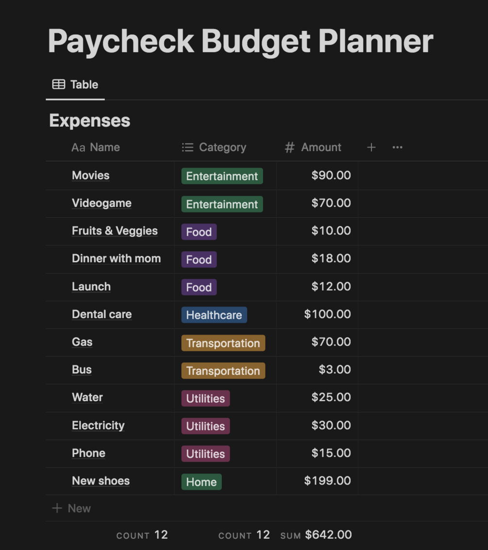 Notion Paycheck Budget Planner